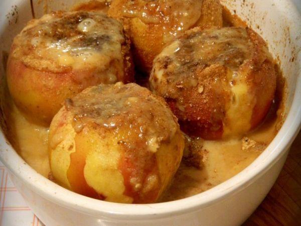 Mod de Preparare: Preîncălzim cuptorul la 190 de grade şi ungem cu unt o formă de ceramică sau sticlă termorezistentă pe care dorim să o folosim şi presărăm tava cu 1 lingură de pesmet. Merele le curăţăm în întregime sau doar pe alocuri, lăsând fâşii de coajă pentru un aspect mai deosebit. Le scobim cu grijă ca să obţinem o căsuţă numai bună de umplut, dar având grijă să nu găurim fundul mărului. În partea inferioară, înainte de scobire, eu am tăiat o feliuţă foarte mică pentru a permite merelor să aibă o stabilitate cât mai bună. După ce le-am scobit le umplem cu fructele uscate pe care le-am amestecat în prealabil cu scorţişoara.