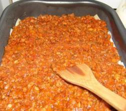 Intr-o cratita unsa cu ulei se pune un strat de pasta de cartofi, cam jumatate din compozitie, apoi se adauga sosul bolognez urmat de cealata jumatate de pasta de cartofi.