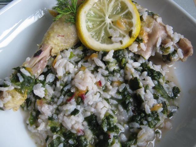 Mod de preparare: Am pus puiul la fiert separat, pentru ca nu stiam cat dureaza sa se fiarba. Dupa ce a fiert carnea, cu zeama de la pui ceapa, morcovul si orezul si le-am lasat la foc mic pana a inceput orezul sa se umfle. Am adaugat spanacul si loboda tocate marunt. Am pus si carnea de pui, feliile de lamaie, am potrivit de sare si am mai lasat sa dea cateva clocote. Dupa ce inchideti focul nu uitati sa scoateti feliile de lamaie ca sa nu se amarasca mancarea.