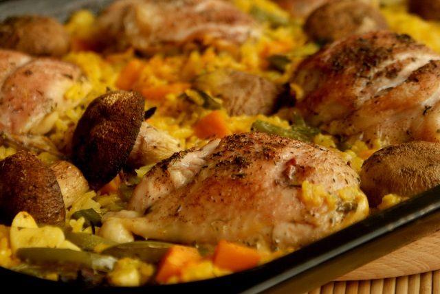 Mod de Preparare: Se incalzeste cuptorul la 200 grade C. Se spala copanelele, se sterg si se freaca cu sare, piper, usturoi (pisat) si boia dulce. Puneti-le intr-o tava unsa si lasatile 20 minute la cuptor. Se curata ceapa si se toaca fin. Se curata ardeii grasi si se toaca (nu foarte marunt). Se toaca 1/2 legatura de patrunjel. Rosiile se pun la scurs. Se scot copanelele, se adauga in locul lor orezul, legumele, supa si patrunjelul. Se condimenteaza cu sare, piper si boia dulce sau iute. Le punem pe foc sa dea un clocot, apoi se introduc la cuptor pentru 30 minute. Se orneaza cu patrunjelul ramas.