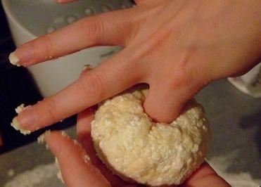 daca branza e mai umeda s-ar putea sa mai aveti nevoie de 1 lingura de faina in compozitie, aluatul trebuie sa fie usor de format, sa nu fie prea lipicios.