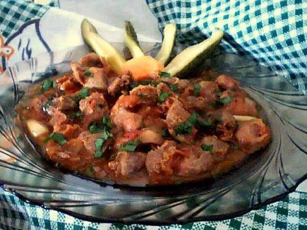 Le lasam pana scade apa si se formeaza sosul, condimentam cu sare , piper si boia. Asezonam cu verdeata. Servim cu castraveciori murati