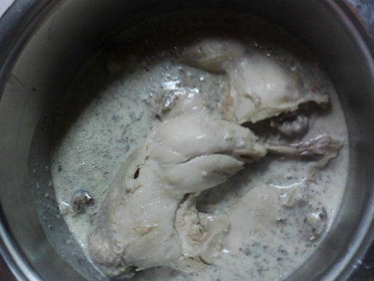 Mod de preparare: Fierb pulpele. Calesc ceapa, adaug ciupercile date pe robot, las sa se caleasca impreuna, adaug supa si las sa scada.