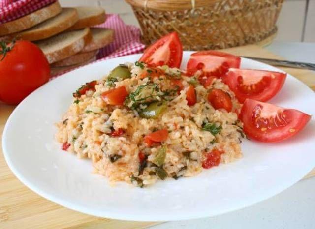 Mod de Preparare: Nu este mare filozofie la prepararea acestui pilaf. Spalam orezul in cateva ape apoi il punem deoparte pana inabusim legumele. Taiem felii ardeiul si morcovul iar ceapa o tocam marunt. Le innabusim in ulei pana se inmoaie apoi adaugam orezul si mai lasam putin pe foc pana orezul se albeste sau chiar se rumeneste usor, mestecand continuu cu o lingura de lemn sa nu se lipeasca. Adaugam apa fierbinte, asezonam cu sare, tocam si rosiile cubulete si le incorporam si pe acestea in orez apoi introducem cratita in cuptor acoperita cu un capac. Din cand in cand verificam orezul daca a inghitit toata apa. Daca nu este facut si a inghitit toata apa, mai adaugam apa fierbinte si amestecam usor ca sa nu il zdrobim. Asezonam cu patrunjel verde tocat marunt si servim. Este delicios! o mancare foarte usoara de vara.