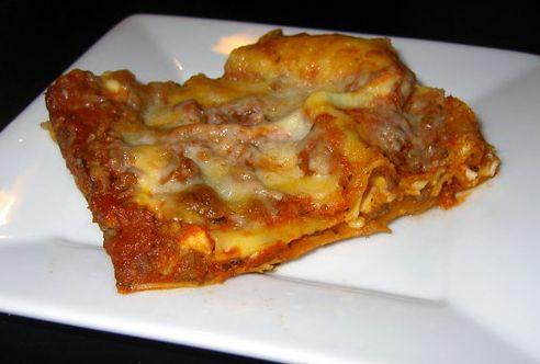 Ingrediente: 450 g carne tocata de porc si vita sau numai de vita, 1 pachet foi de lasagna, 500 ml bulion sau sos de rosii, 500 ml lapte, 500 g mozzarela sau cascaval, 5 linguri rase de faina, 1 cub de unt (25 g), 2 catei de usturoi 250 ml supa pui, sare, piper, rozmarin, 3 linguri vin alb.