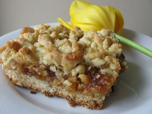 Mod de preparare: Cerne faina si inglobeaza mierea, bicarbonatul stins in zeama de lamaie, uleiul, un praf de sare, sofran si drojdia si zaharul dizolvate in apa calda. Framanta toate aceste ingrediente pana obtii un aluat potrivit de tare. Lasa-l sa se odihneasca aproximativ o ora. Intinde din aluat doua foi. Asaza prima foaie intr-o tava unsa cu ulei si tapetata cu faina. Unge foaia cu dulceata si acopera cu cealalta foaie. Intinde deasupra restul de dulceata si presara migdalele. Aluatul ramas pe margine, taie-l (ramasitele de aluat se rad deasupra). Coace la cuptor, la foc moderat, 40 de minute.
