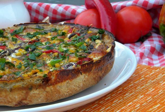 Mod de preparare: Din apa calduta, drojdie, zahar si 2-3 linguri cu faina, a o maia si las-o la cald 15-20 de minute. Adauga restul de faina cernuta si sarea si amesteca. Toarna uleiul si framanta energic. Cand aluatul se ia usor de pe maini, asaza-l intr-un bol uns cu ulei si lasa-l la dospit o ora. Intre timp, pune granulele de soia la fiert in apa cu concentrat de legume si cateva picaturi de otet. Lasa-le pe foc o jumatate de ora, scoate-le si pune-le la scurs. Da morcovii si telina pe razatoarea mica si toaca marunt ceapa. Caleste-le in ulei cu un praf de sare. Cand morcovul s-a inmuiat, adauga soia stoarsa, bulionul, cimbru si piper dupa gust. Lasa pe foc vreo cinci minute. Daca e cazul, sareaza. Intinde aluatul intr-o tava de tarta unsa, inclusiv pe margini. Toarna umplutura de soia si da la cuptor. Scoate dupa 25-30 de minute, decoreaza cu fasii de ceapa rosie si felii de rosie si serveste cu sos picant.