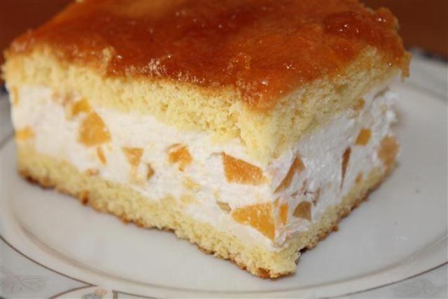 Mod de preparare: Intr-un castron, freaca galbenusurile cu uleiul. Separat, bate albusurile spuma cu zaharul si dous pliculete cu zahar vanilat. Adauga galbenusurile frecate, dupa care incorporeazムfaina proaspat cernuta. Toana compozitia astfel obtinuta intr-o tava unsa si tapetata cu faina. Lasa la cuptor, la foc moderat, 30 de minute. Bate frisca rece impreuna cu zaharul vanilat ramas. Taie blatul pe jumatate si pune un strat generos de frisca. Asaza deasupra, in functie de gust, fructe din compot bine scurse, taiate in bucati, si cateva bucatele de portocala. Acopera cu a doua foaie de blat si, din nou, cu frisca. Orneaza deasupra cu fructe din compot feliate, iar marginile imbraca-le in fulgi de migdale. Se dă prajitura cu fructe din compot la rece macar o ora inainte de a o taia.