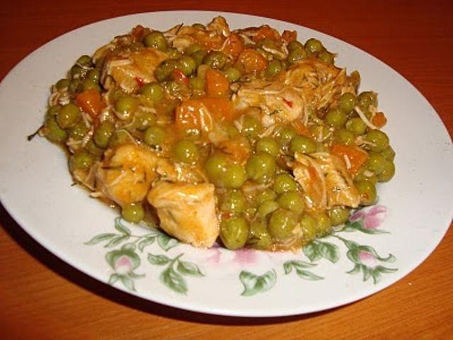 Mod de Preparare: Într-o cratiţă punem puţin ulei să se încingă, după care adaugăm toate legumele să se călească, dar fără să se ardă. Dupa vreo 5 min adaugăm şi mazărea şi completăm cu apă sau supă de carne şi lăsam sa fiarba la foc mic. Între timp, într-o tigăiţă cu ulei încins, prăjim ciocanelele de pui condimentate bine. Când mazărea şi legumele s-au fiert, condimentam cu sare, piper, cimbru şi mai lăsăm să fiarbă câteva minute, după care adăugăm şi ciocanelele prajite în mâncărica noastră. Lasăm mâncărica pe foc până când mai scade sosul. La final presăram marar.