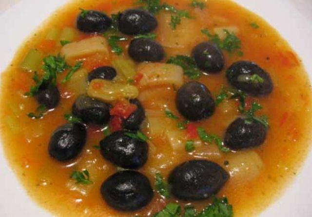 Mod de Preparare: Se curata, se spala si se taie prazul. Se calesc ceapa si prazul in 4-5 linguri de ulei, la foc mic, pana se inmoaie, intr-un vas termorezistent pentru cuptor. Se toarna sosul de tomate si, eventual, se mai adauga putina apa ca mancarea sa iasa mai zemoasa. Se adauga maslinele, se acopera vasul cu un capac si se mai lasa la fiert 10 minute. Adaugam dupa gust sarea, piperul, foaia de dafin, zaharul si se mai lasa 5 minute la fiert. Se ia vasul de pe foc si se introduce la cuptor incins pentru 10 minute. Se scot foile de dafin, presaram patrunjel si se serveste mancarea de praz fierbinte, cu paine taraneasca alaturi.