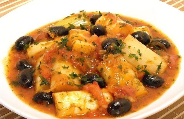 Mod de preparare: Ceapa se toacă mărunt și se călește un pic în ulei, apoi se stinge cu apă. Se adaugă cartofii tăiați cuburi, sarea, și se pune apă cât să îi acopere. Se lasă la fiert. Când sunt aproape fierți se adaugă sucul de roșii, măslinele și mirodeniiile. Se mai fierbe până cartofii s-au înmuiat. Se servesc cu murături alături.