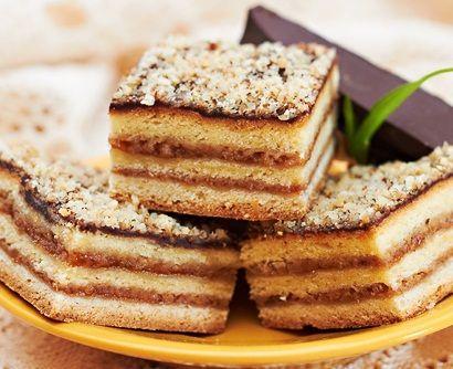 Mod de Preparare: Ingredientele pentru aluat se amesteca, formand un aluat ce se va imparti in trei parti egale si se intind foi ce se vor coace pe fundul tavii de cuptor. Foile se coc in cuptor, la foc potrivit in aprox. 10-15 min. Gemul si nuca se amesteca, se imparte in doua parti egale si se pune intre foi. Ciocolata se topeste la main-marie, sau in cuptorul cu microunde, se va incorpora uleiul, pentru ca ciocolata sa fie mai lucioasa si sa se poata taia mai usor. Dam prajitura la rece, pana a doua zi pentru a se putea portiona. Nu se poate taia imediat pentru ca foile sunt destul de crocante, asa ca trebuie sa aveti rabdare, dar a doua zi prajitura se va fragezi si se va taia frumos.