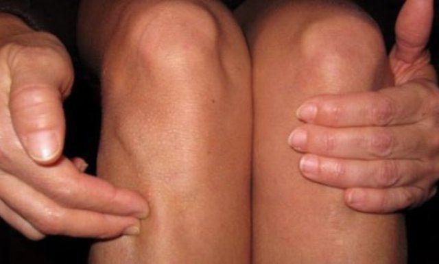 Vei observă mai jos de genunchi o zona ceva mai întinsă. Găseşte punctul cel mai proeminent, pune degetul pe el şi revino în poziţia iniţială.