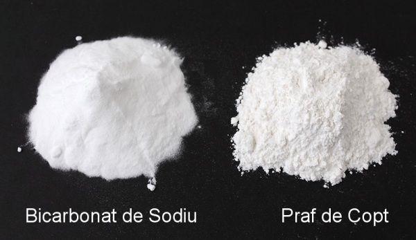 Bicarbonat de sodiu - Este o bază care creează dioxid de carbon atunci când este amestecată cu ingrediente acide. Când este pus în reţete, ai nevoie de ceva acid, precum iaurt, lapte bătut, suc de lămâie, zahăr brun sau melasă. Este mult mai puternic decât praful de copt, nu neutralizează şi dă un gust metalic. Se adaugă un sfert de linguriţă de bicarbonat la o cană de făină.