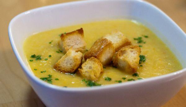 Mod de Preparare: Fierbem 1 - 1,5 l de apa in care diluam 1-2 cuburi cu gust de legume. Calim ceapa in margarina, adaugam morcovii taiati felii mai groase, acoperim si lasam cca 10-15 min la innabusit cu 1-2 polonice supa de legume. Taiem cartofii cubulete si ii adaugam peste morcovi, turnand si restul de supa. Cand legumele au fiert destul, pasam cu mixerul vertical pana devin crema. Punem sare si piper dupa gust, iar daca e prea groasa o mai putem dilua cu putina supa. Taiem cateva felii de paine in cubulete cu latura de cca 1 cm. Intr-o tigaie mica punem 1 lingura de ulei si cand e incins punem si cubuletele de paine, miscand mereu tigaia din incheietura, pana cand cubuletele vor deveni aurii. Punem supa crema in castroane iar deasupra presaram crutoane si piper proaspat macinat. Are un gust foarte rafinat si placut.