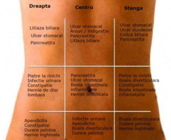 Acum ca ai studiat harta durerilor de stomac, iti va fi mult mai usor sa depistezi de ce afectiuni suferi atunci cand te confrunti cu senzatii neplacute in zona abdominala. Daca durerile persista, nu ezita sa mergi la consult de specialitate pentru a gasi tratamentul si regimul potrivite in cazul respectiv. Sursa: divahair.ro.