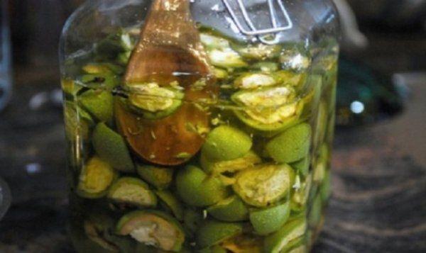1. Se maruntesc 20-24 de nuci verzi. Se pun intr-o sticla de 1 litru, cu gat larg, iar deasupra turnati alcool de 40 de grade, de buna calitate, sa fie de 2-3 degete deasupra nivelului nucilor.
