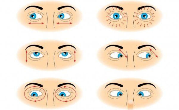 Concentreaza-te pe varful nasului. Ramai concentrat timp de 5 minute. Clipeste mai des. Atunci cand clipesti ajuti ochii sa se curete si sa se lubrifieze. in acelasi timp, muschii fetei se vor relaxa. Stai drept si priveste in partea stanga. Apoi priveste drept in fata. Poti clipi cateva secunde pentru a relaxa ochii, apoi repeta exercitiul. Fa acest exercitiu schimband pozitia ochilor (dreapta, sus, jos, coltul din dreapta jos, coltul din stanga jos si coltul din stanga sus). Nu uita sa clipesti. Traseaza orizontal, cu privirea, numarul opt. Clipeste. Deseneaza un cerc cu ochii. Clipeste cu ochii inchisi.