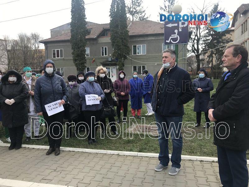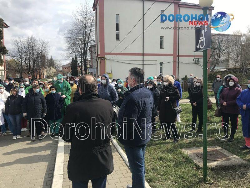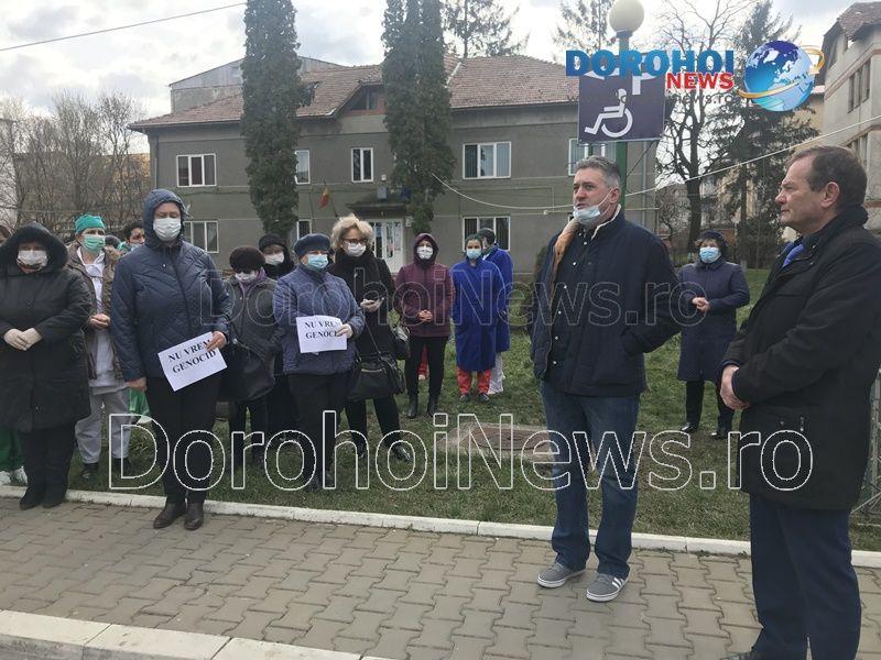 După ce cadrele medicale de la Spitalul Dorohoi au protestat mai bine de o oră în curtea unității spitalicești, primarul Dorin Alexandrescu a venit să vorbească cu aceștia.