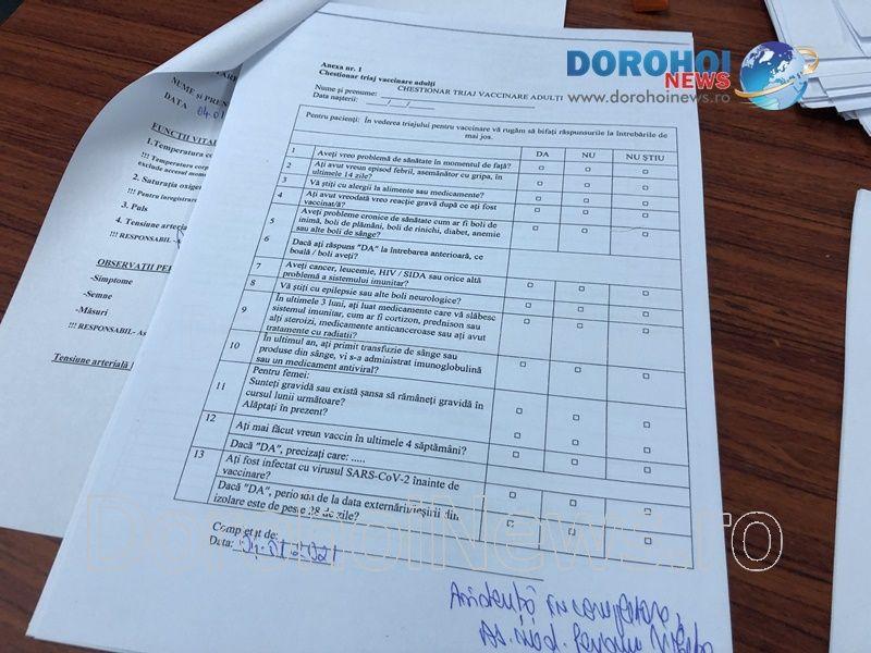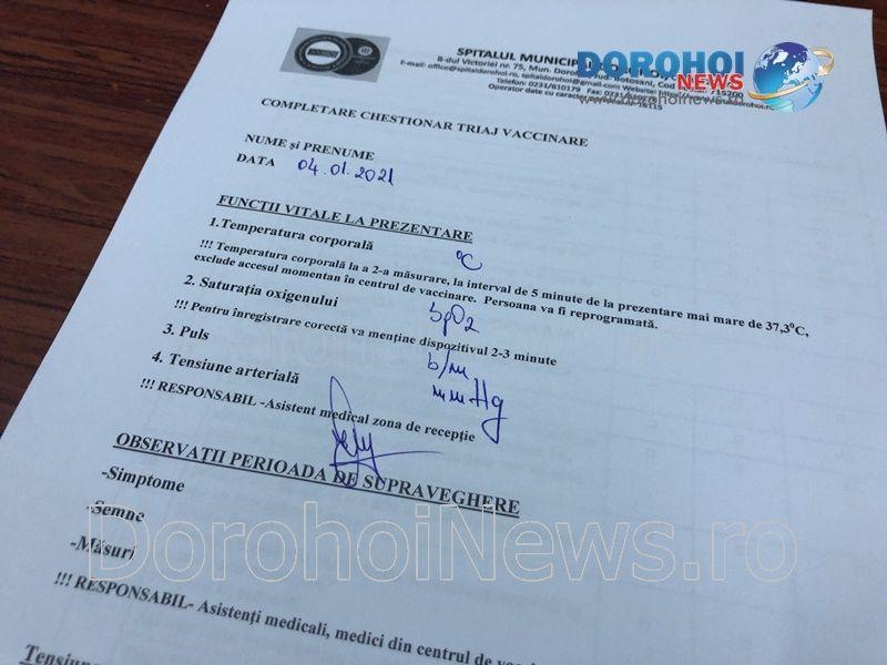 Primele 100 de vaccinuri anti COVID au ajuns duminică, 3 ianuarie 2021, la Spitalul Municipal Dorohoi. Cele 20 de flacoane, a câte cinci doze fiecare, au fost aduse cu o autospecială dotată cu aparat frigorific, autospeciala fiind escortată de la sediul Direcției de Sănătate Publică (DSP) Botoșani și până la Dorohoi de o mașină a poliției și una a jandarmeriei. Dozele de vaccin au fost preluate la Dorohoi de managerul spitalului, medicul Valerian Andrieș și de cadrele medicale care vor deservi Centrul de vaccinare, organizat la parterul blocului materno-infantil.