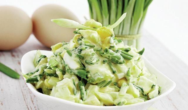 Mod de Preparare: Leurda se spală, se lasă la scurs și se taie în bucăți de 3-4 cm, după care se pune într-un castron. Ouăle se curăță de coajă, se taie în sferturi și se pun peste leurdă. Castraveciorii se curăță de coajă și se taie rondele, la ridichi se înlătură cotorul și se taie rondele. Brânza se taie bucățele mici. Adăugăm atât castraveciorii, ridichile și brânza în castron - repartizându-le uniform. Preparăm sosul din iaurt, ulei de măsline, muștar și zeama de la jumătate de lămâie. Condimentăm sosul cu sare și piper și amestecăm bine, apoi se toarnă peste salată. Se servește imediat.