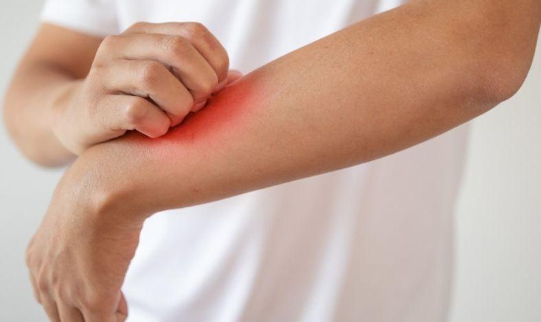 Modificari cutanate. O eruptie de culoare violet sau rosie apare in special pe fata, pleoape, pe zona din jurul unghiilor, pe coate, la nivelul genunchilor, al pieptului si al spatelui.