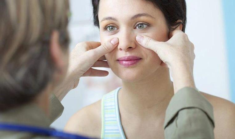 Presiune la nivelul fetei insotita de durere, nas infundat, uneori plin cu secretii (galbene sau verzui). In dependenta de sinusul afectat pot aparea dureri la nivelul fruntii, la nivelul obrajilor, in jurul orbitei, in spatele ochilor. Inclusiv unii pacienti pot avea tuse, febra, dureri dentare, cefalee, diminuarea sensibilitatii gustative sau olfactive.