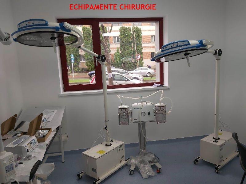aparatură şi echipamente pentru chirurgie (audiometru, endoscop flexibil pentru consult ORL cu cameră video, aspirator ORL, otoscop, oglindă frontală, trusă instrumentar, electrocauter, lampă sciatică cu picior, trusă chirurgie OG, lampă examinare cu led, motor pentru tăiat ghips, pistol puncţii biopsice prostatice, dilatatoare uretrale, trusă instrumentar chirurgical urologie, uroflowmetru, electrocauter, aspirator chirurgical);