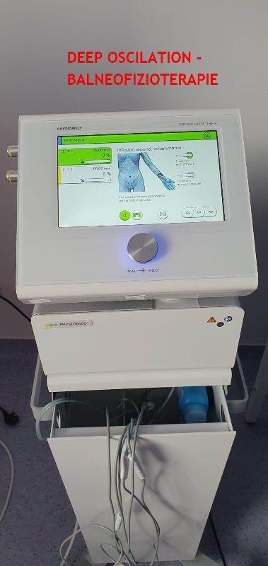 aparatură şi echipamente pentru balneofizioterapie (baie galvanică patrucelulară, aparat laser de înaltă intensitate, aparat diatermie de contact, aparat masaj limfatic, oscilometru Doppler-deep oscilation, baie de parafină);