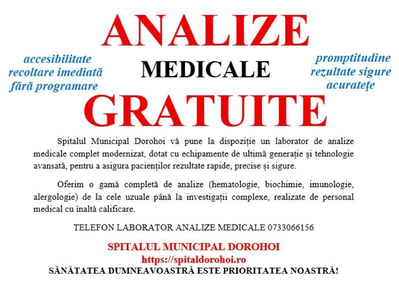 Vă așteptăm la Laboratorul de Analize Medicale al Spitalului Municipal Dorohoi – unde grija pentru sănătatea dumneavoastră este prioritatea noastră!