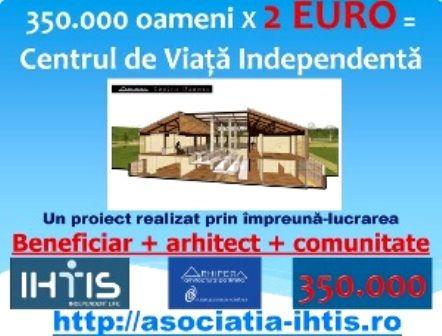 Analizati AICI demersul Asociației IHTIS, de realizare a unui așezământ special, prin împreună-lucrarea beneficiar-arhitect, comunitatea fiind factorul decisiv în cadrul Campaniei intitulate sugestiv: “350.000 oameni x 2 EUR = Centrul de Viață Independentă”