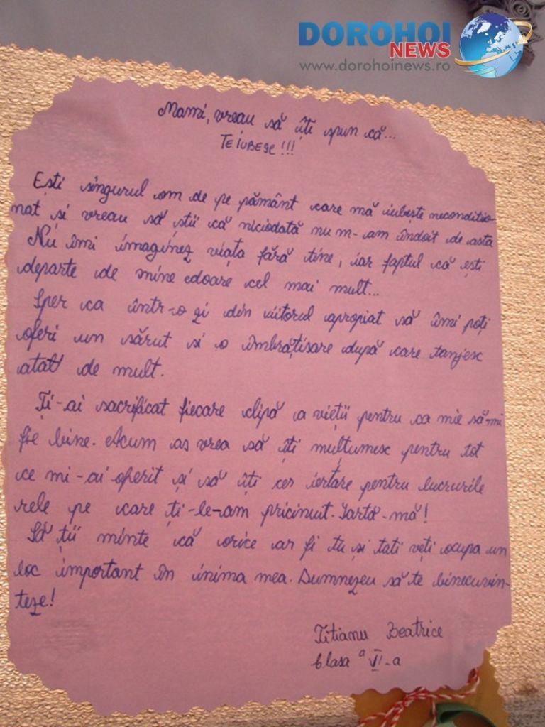 Copiii au aşternut pe hârtie cele mai frumoase gânduri, trăiri, sentimente alături de mulţumirea şi recunostinţa pentru inegalabila fiinţă – mama..