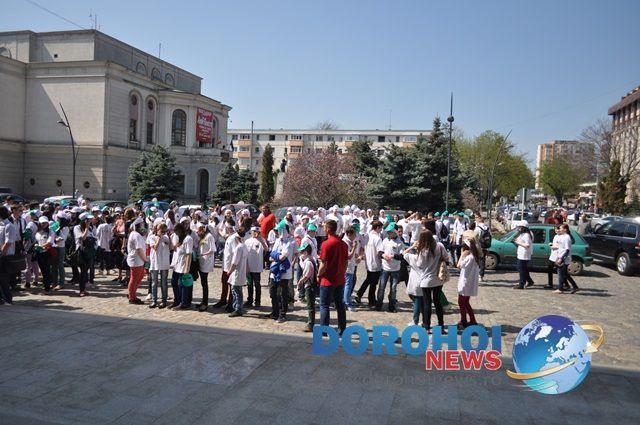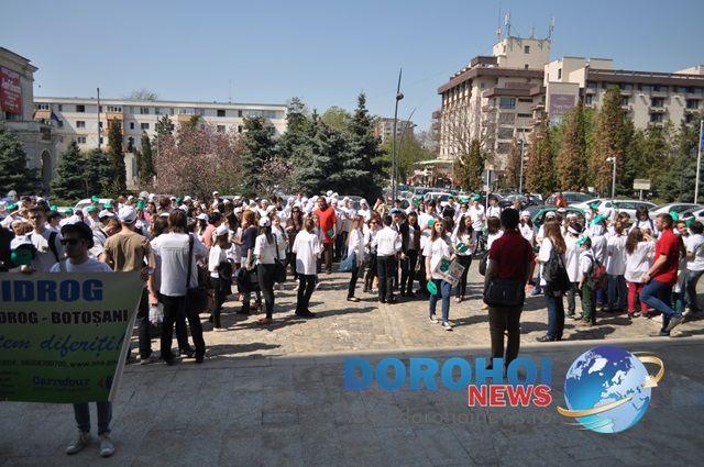 Înainte de a pleca în marşul de sensibilizare a opiniei publice în legătură cu riscurile şi consecinţele consumului de droguri cu sloganul „În faţa drogurilor nu suntem diferiţi” pe traseul Piaţa Revoluţiei - Str. Cuza Vodă - Str. Calea Naţională (zona Uvertura Mall) - Str. Marchian - Bulevardul M. Eminescu, cu finalul în Parcul Mihai Eminescu, elevii au ascultat discursurile anti-drog ale prefectului Costică Macaleţi, primarului Ovidiu Portariuc şi inspectorului general şcolar Mihaela Huncă.