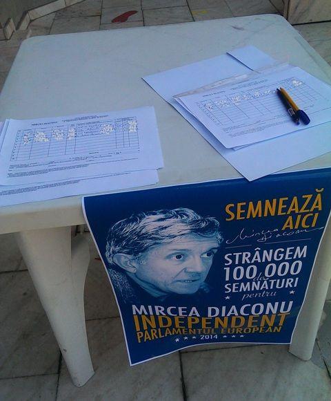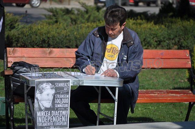 Sute de botosaneni au venit sambata si duminica, in fata teatrului „Mihai Eminescu” din Botosani, sa semneze pentru candidatura lui Mircea Diaconu la alegerile europarlamentare din 25 mai 2014.