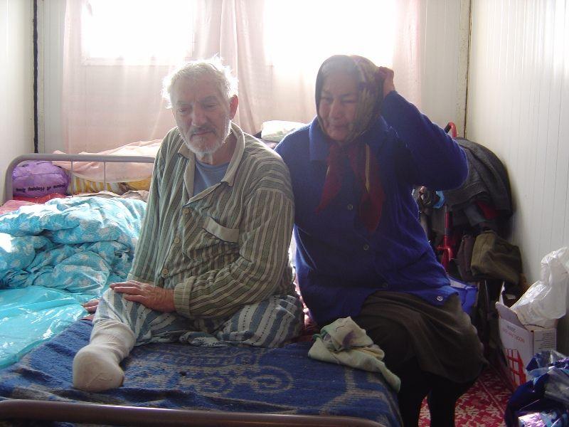 Vasile are 73 de ani trăieşte de ani de zile în chinuri groaznice într-un modul din tabăra de sinistraţi. El are spatele brăzdat de răni adânci şi dureroase, răni dobândite de la poziţia în care este obligat să stea ţintuit în pat. Din cauza diabetului în ultimii zece ani medicii au fost nevoiţi să-i reteze ambele picioare. Nici nu vrea să-şi aducă aminte prin ce chinuri a trecut şi recunoaşte că în această viaţă a suportat durere cât alţii în trei vieţi. Picioarele i-au fost scurtate în mai multe rânduri.