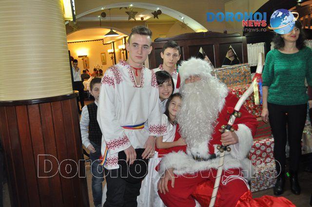 Copiii și tinerii instituționalizați în cadrul Complexului de Apartamente „AMICII” Dorohoi, alături de intructorii de educație și de Mihaela Onofrei, șefa complexului, l-au întâmpinat sâmbătă, 10 decembrie 2016, la Popasul „Cucorăni” Botoșani, pe Moș Crăciun. Aceștia au pregătit o serie de colinde și urături în urma cărora Moșul le-a înmânat cadourile primite de la Fundația G&E IN A BOTTLE.