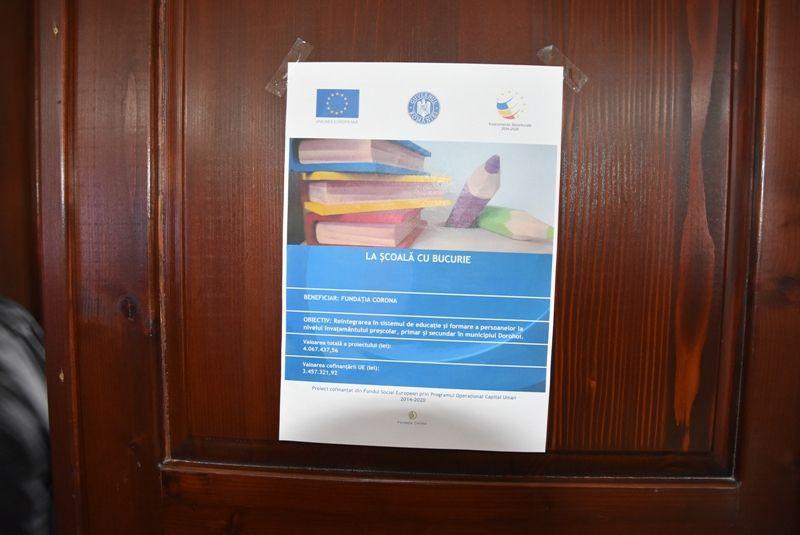 Fundația Corona Iași alături de Primăria municipiului Dorohoi, Asociația CLARA, Dorohoi, Școala Profesională Specială „Ion Pillat”, Şcoala Gimnazială „Alexandru Ioan Cuza”, Şcoala Gimnazială „Ştefan cel Mare” din Dorohoi, implementează proiectul cu titlul: „LA ȘCOALĂ CU BUCURIE’’.