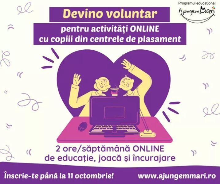 Filiala din Botoșani a programului educațional „Ajungem MARI” caută voluntari de cursă lungă, pentru copiii și tinerii din centrele de plasament din municipiul-reședință de județ, așteptând înscrierile până pe 11 octombrie. Având în vedere contextul epidemiologic, activitățile se vor derula online. Modulul căruia i se pregătește startul, se va desfășura în perioada decembrie 2020-iunie 2021.