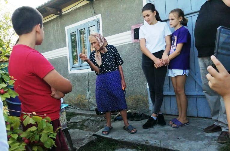 Una dintre bunicuțe a insistat să intrăm în căsuța ei, o căsuță cu o cameră și o verănducă, fără lumină, dar bucuroasă că o are pentru că, ne-a povestit ea, cealaltă i-a luat foc.