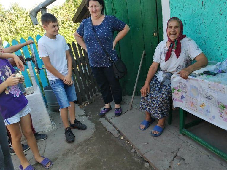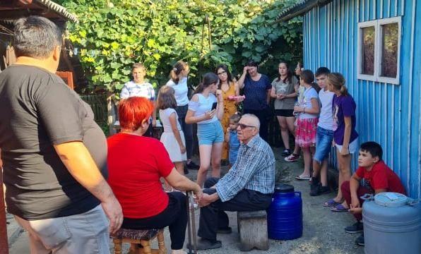 Bunicii, unii mai în putere, alții de abia se puteau deplasa, au rămas surprinși să vadă atâta lume în curtea lor. Nu înțelegeau, la început, de ce opresc cele 4 mașini la poarta lor. După prezentarea proiectului nostru își deschideau sufletul și inima, parcă înfloreau și parcă mai întinereau cu ceva ani. Ne-au povestit greutățile cu care se confruntă, faptul că nu au copiii și nepoții aproape „că ei vin, dar vin mai rar că-s departe, maicăˮ. Așa că noi, voluntarii ne-am transformat, pentru câteva momente, în copiii și nepoții lor. Le-am strâns mâinile, i-am mângâiat și le-am dus o masă caldă. Copiii au avut parte și de o lecție de folclor, pentru că, una dintre bunici ne-a prezentat întreaga casă plină de cusături și țesături, explicându-ne termeni precum „a nividiˮ sau ce înseamnă măsura de „un cotˮ.