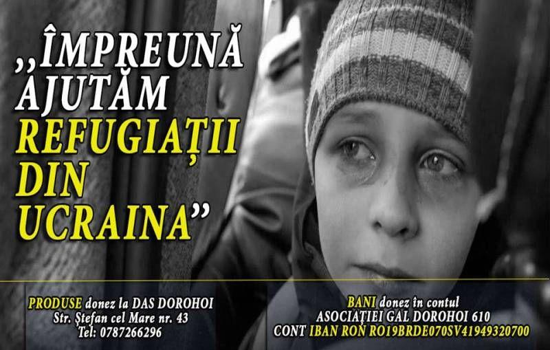 Primaria municipiului Dorohoi, Direcțía de Asistență Socială și Asociația GAL DOROHOI 610, lansează campania umanitară „Împreună ajutăm refugiații din Ucraina” pentru a veni în întâmpinarea nevoilor cetățenilor ucraineni afectați de pe urma războiului.