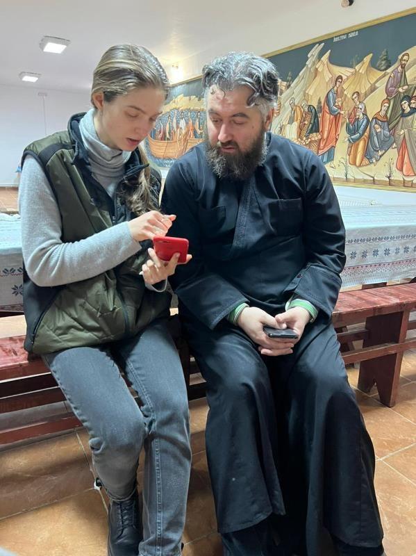 Doamna Natalia intermediază comunicarea cu refugiații din Ucraina, care își exprimă cu lacrimi în ochi recunoștința pentru faptul că sunt sprijiniți, mângâiați și ajutați în aceste momente grele. Biserica parohială este deschisă pentru ei ori de câte ori simt nevoia să intre și să se roage, după cum ne mărturisește părintele Ionuț Apetrei, care a fost martorul multor momente emoționante în aceste zile. Sursa: doxologia.ro