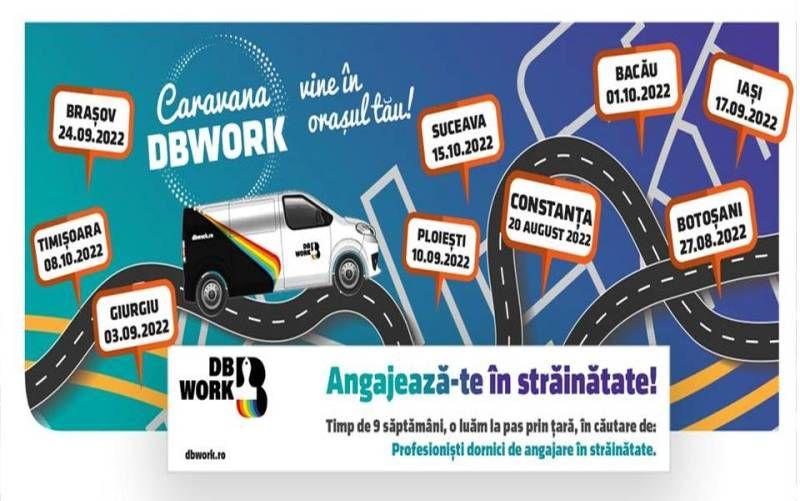 Caravana joburilor în străinătate este inițiativa agenției de mediere și plasare forță de muncă străinătate DB Work, prin intermediul căreia sunt organizate mai multe târguri de joburi în 9 orașe din România.