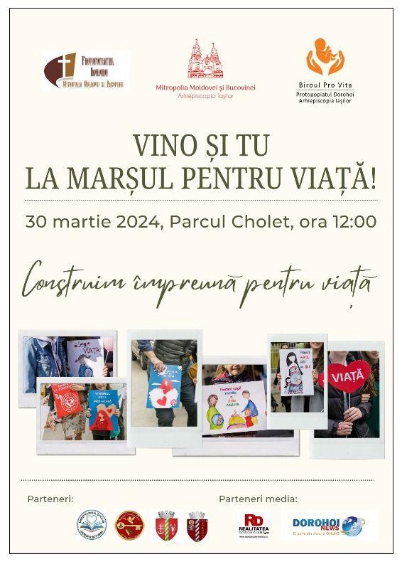 Departamentul Pro-vita al Protopopiatului Dorohoi vă invită la „Marșul pentru Viață”, care va avea loc sâmbătă, 30 martie 2024, la Dorohoi tema ediției din acest an fiind „Construim împreună pentru viață”.