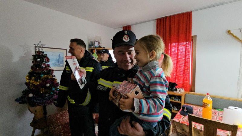 Impresionați de situația dificilă a familiei, care și-a văzut distrus locul plin de amintiri și bucurii, pompierii au venit, de această dată, cu brațele pline de daruri, astfel încât familia să simtă căldura sărbătorilor în ciuda pierderii suferite.