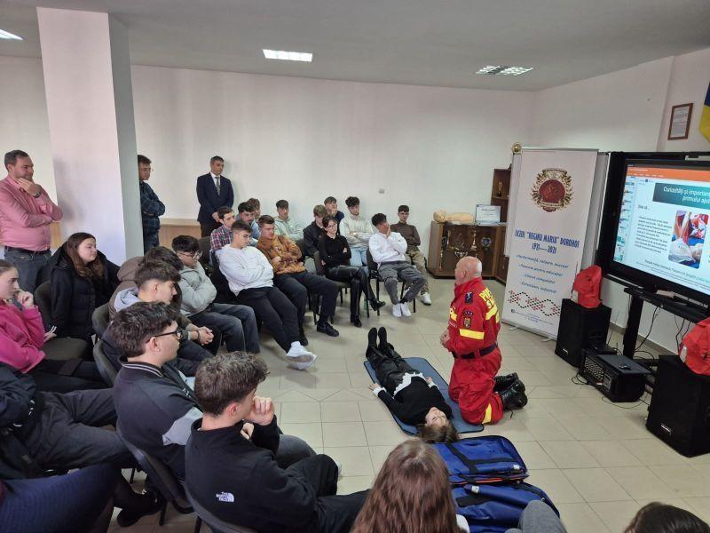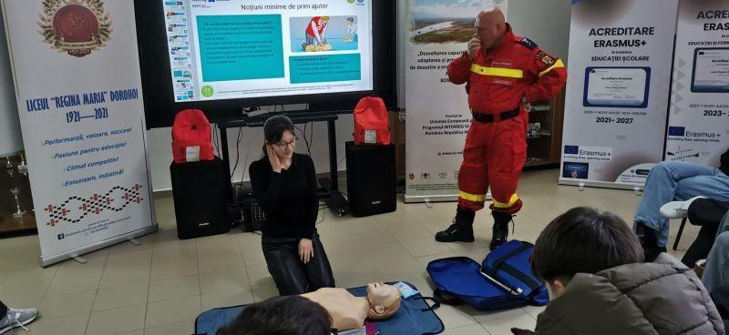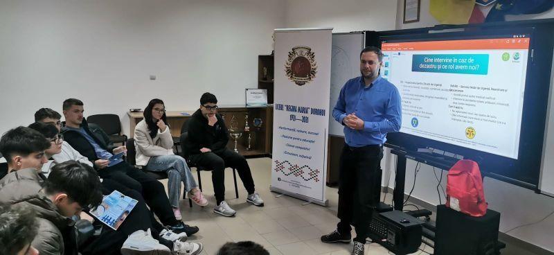 Timp de patru zile, 12 elevi ai Liceului „Regina Maria” din Dorohoi, în calitate de voluntari, au participat la sesiuni de instruire privind comportarea în timpul și după producerea unor dezastre și măsurile ce trebuie luate în cazul unor situații de urgență.