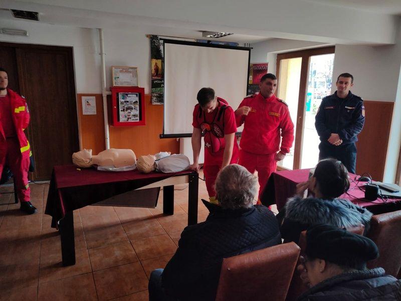 Încă din primele minute, participanții au fost implicați în activități practice. Paramedicii SMURD le-au prezentat modul corect de acordare a primului ajutor în caz de înec cu bol alimentar, cu ajutorul vestelor Heimlich special destinate instruirii. Ulterior, asistenții sociali au exersat manevrele de resuscitare pe manechine, pentru a dobândi deprinderi esențiale în acordarea primului ajutor.