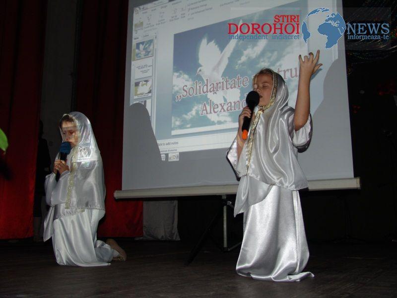 Apoi, colegii Alexandrei de la Școala nr.7, copiii de la Casa Municipală de Cultură, Clubul Copiilor, Ansamblul Mugurelul și Seminarul Teologic Dorohoi au dansat și au cântat poate mai bine ca niciodată pentru un suflet de copil nevinovat aflat în suferință.