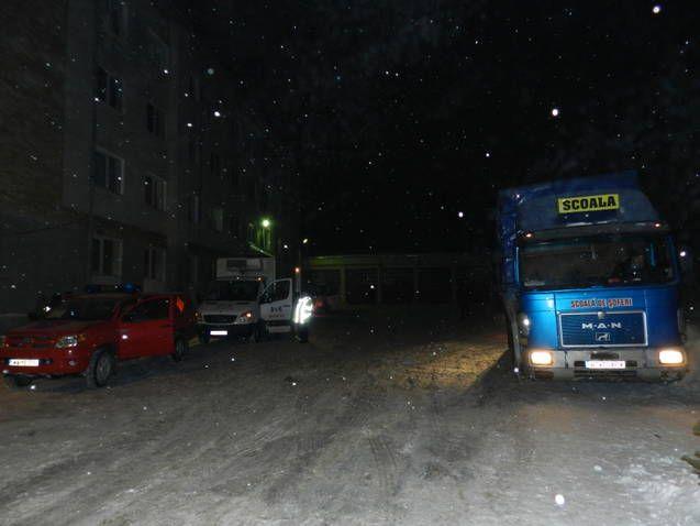 Astăzi în jurul orei 6:00, şapte maşini au ieşit pe poarta Inspectoratului pentru Situaţii de Urgenţă. Ajutoarele vor fi distribuite de către pompieri oamenilor necăjiţi din satele afectate de zăpezi.