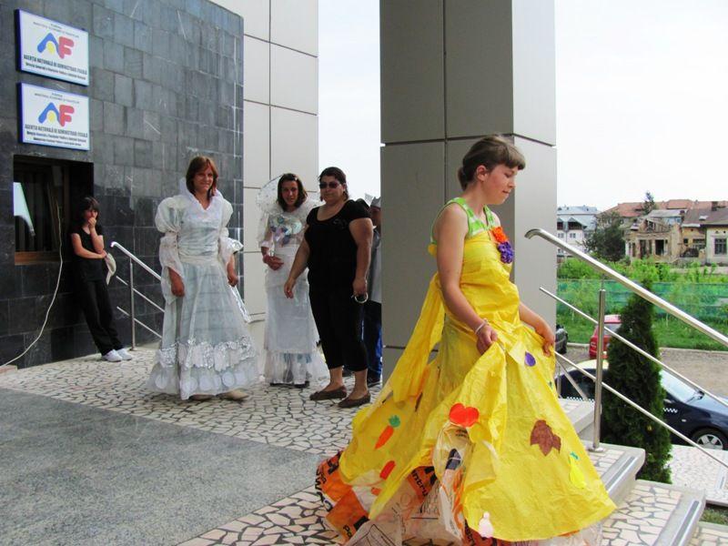 Saci de rafie, hartie creponată, peturi, pahare de plastic, capace de la sticle, saci menajeri au fost materialele pe care micuții dorohoieni le-au folosit în confecționarea costumelor purtate. La parada costumelor eco, organizată de profesorul Ana Ilaș, voluntar în cadrul campaniei “Let’s Do It, Romania”, au participat elevi de la școala nr. 4, școala nr. 8 “Mihail Kogălniceanu”, complexele de apartamente “Floare de colț”, “Casa mea” și Școala de Arte și Meserii “Ion Pilat”.